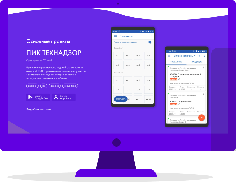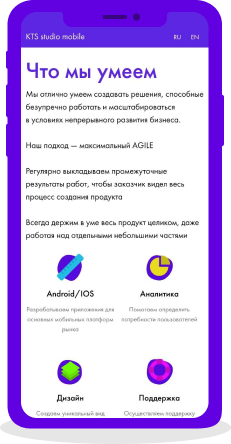 Стартовый блок мы решили сделать в виде анимированной картинки, которая отражает технологичность компании